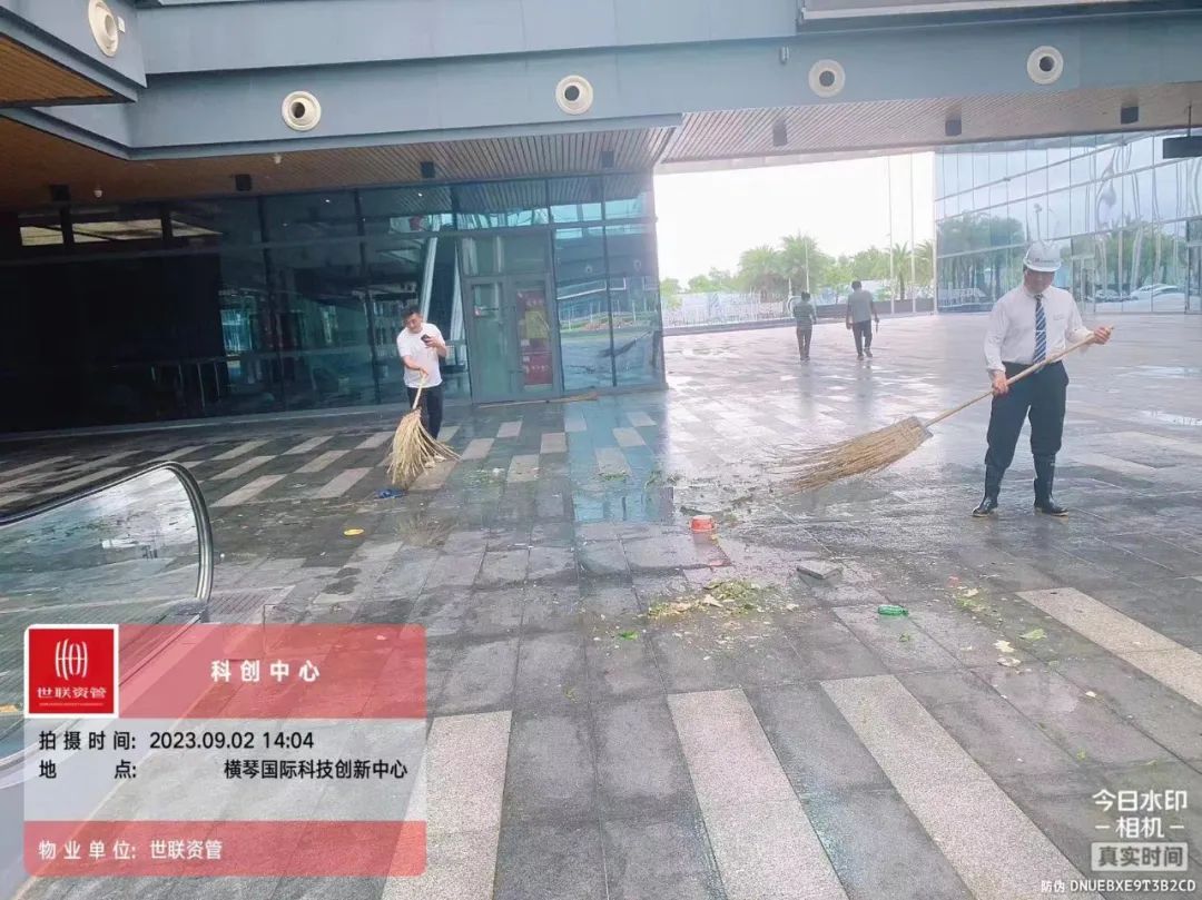 第一時(shí)間對(duì)園區(qū)環(huán)境進(jìn)行清障復(fù)原,完成園區(qū)所有枯樹樹葉清理、樹木扶正,樹撐檢查加固;完成園區(qū)公共垃圾桶、煙灰柱、地毯復(fù)原工作;檢查受災(zāi)情況并進(jìn)行修復(fù),檢查設(shè)備機(jī)房、電梯是否正常運(yùn)行等,確保企業(yè)可正常辦公。其中橫琴國際科創(chuàng)中心園區(qū)應(yīng)急避難場所本次接待人員約1500人次,產(chǎn)生生活垃圾約3噸,人員撤離后已及時(shí)清理。