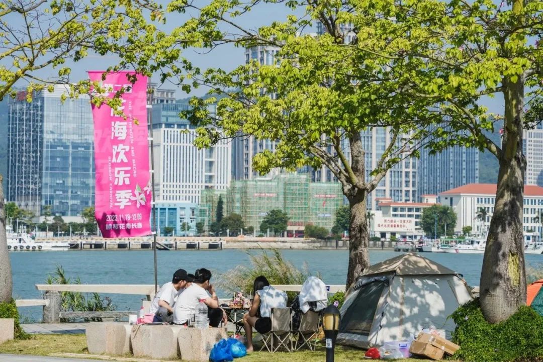 在花海長廊三號驛站,合作區(qū)首個預約露營區(qū)建成,利用橫琴二橋橋底及海堤側(cè)綠地,以特色綠化植物造景為主題,并設置觀演舞臺區(qū)、洗手池、插電樁、露營盒子、趣味打卡點、自然無動力兒童游樂區(qū)等露營配套設施,為游客打造依橋水畔趣味植物主題露營場地。