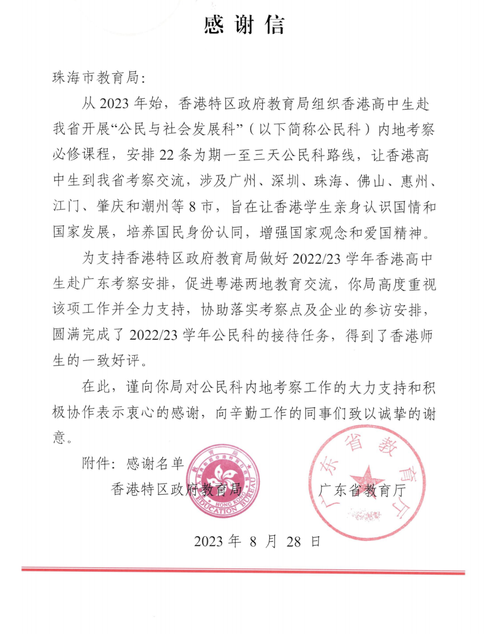 助力粵港教育交流,支持兩地智趣研學。香港特區(qū)政府教育局組織香港高中生赴我省開展“公民與社會發(fā)展科”內地考察必修課程,大橫琴管廊積極配合相關工作的開展,為香港高中生細致介紹橫琴綜合管廊這一保障城市運行的“地下生命線”,獲“香港特區(qū)政府教育局、廣東省教育廳”致信感謝,被認定為“工作特別突出單位”。