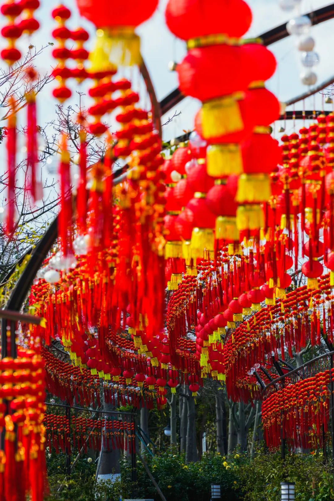 天沐河賽艇公園已悄悄“喜上樹梢”,火紅的燈籠串兒相繼攀上枝頭;天沐河兩岸的綠水青山,在陽光與微風(fēng)中歲月靜好;通往小橫琴山的山體步道也披上嶄新的“紅袍”,靜候登山游人們的到來;花海長廊的風(fēng)鈴長廊趁此新春良辰,煥然一新,喜慶的燈籠與悅耳的風(fēng)鈴在風(fēng)中共同起舞……