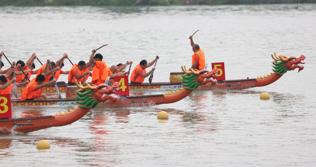 云旗獵獵,鑼鼓頻催。賽場(chǎng)上,在富有節(jié)奏的鼓聲下,整齊劃一的動(dòng)作,奮力揮槳、劈波斬浪,河面上演著“速度與激情”。