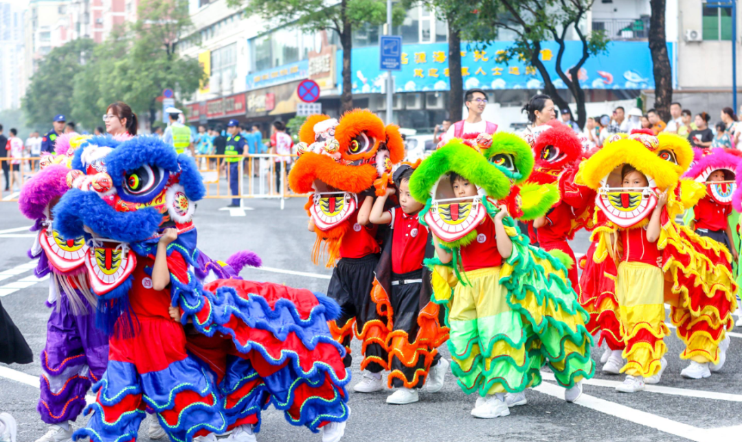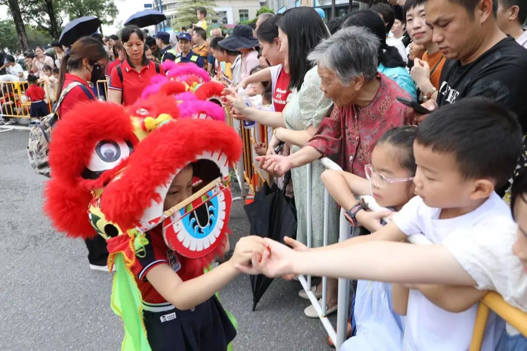 《群獅共舞》《輪滑龍》《賽龍奪錦》《幼兒萌獅》等斗門傳統(tǒng)民俗文化,以及管樂(lè)團(tuán)合奏《迎賓曲》《金龍奪標(biāo)》、舞蹈《龍騰九洲》、川劇變臉等富有濃厚非遺特色的文體節(jié)目在岸上的舞臺(tái)穿插上演。