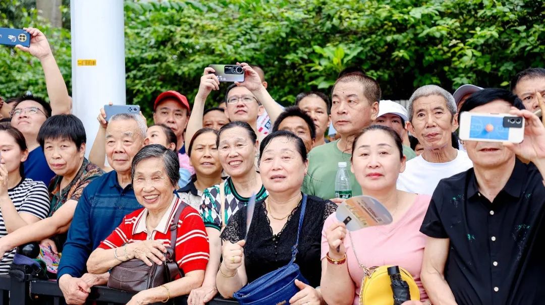 “我每年都和爸爸媽媽一起來(lái)看龍舟賽,現(xiàn)場(chǎng)的氛圍太震撼了!作為斗門人,我感到非常開心和自豪?!倍烽T小觀眾彥宏開心地說(shuō)。與此同時(shí),不少游客專門從外地趕來(lái)觀賞這場(chǎng)“水上競(jìng)技盛宴”。在眾多觀眾中,來(lái)自南屏的歐先生是龍舟賽的“鐵桿粉絲”,盡管的腿部受傷,他也要雙手拄著拐杖,全程站著關(guān)注觀賽。