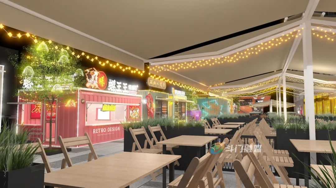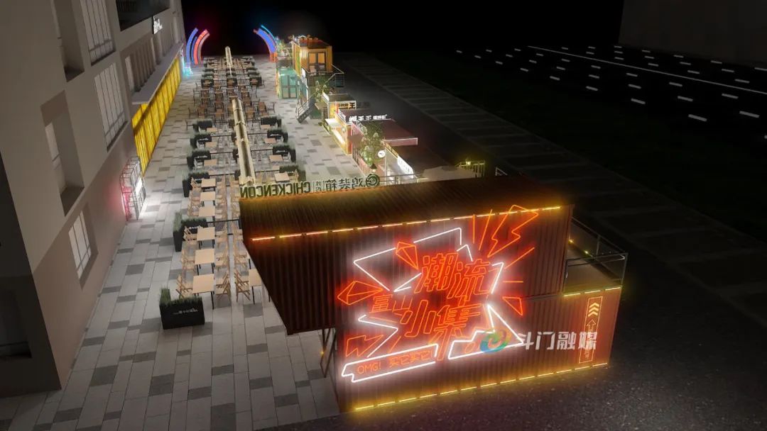 此外,為了提升建筑夜間亮化效果,富山小集還通過路燈和屋檐燈帶營造整體亮化氛圍,通過加入星星燈帶、花車等點(diǎn)綴,提升街區(qū)的整體形象。