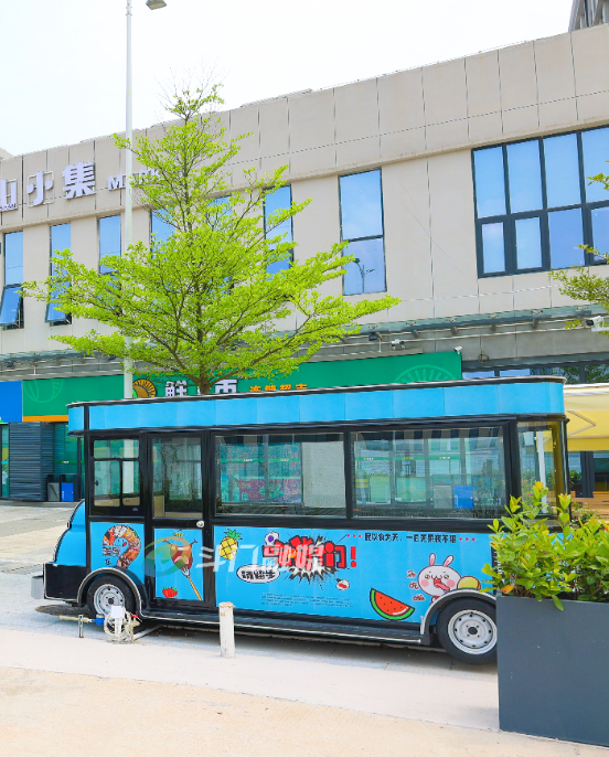 走進(jìn)集市,一個(gè)個(gè)集裝箱設(shè)計(jì)色彩鮮艷,特點(diǎn)十足。集市周邊還配備了休閑座椅、自動(dòng)雨篷、配套停車位等公共設(shè)施。