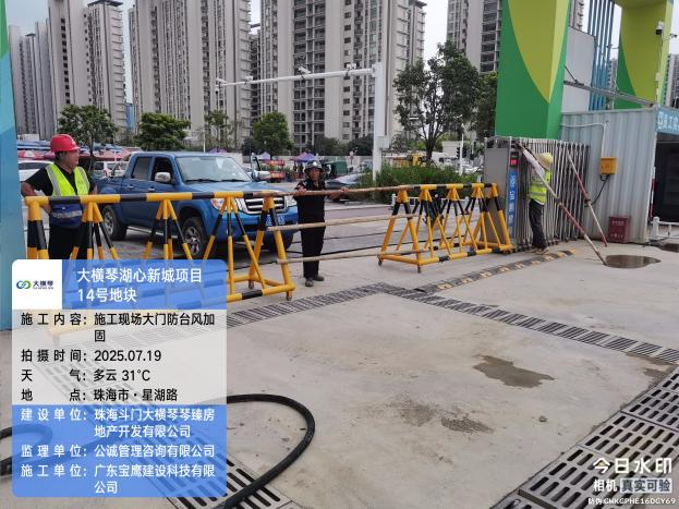 寶鷹建科迅速組織對(duì)所有在建項(xiàng)目的大型機(jī)械設(shè)備、工地的活動(dòng)板房(辦公區(qū)、生活區(qū))、圍擋、加工棚、安全網(wǎng)等臨時(shí)設(shè)施進(jìn)行全面檢查和加固。對(duì)所有工地的臨時(shí)用電線路、配電箱(柜)進(jìn)行排查,臺(tái)風(fēng)來(lái)臨前切斷除應(yīng)急照明、排水設(shè)備外的所有非必要電源,防止觸電和電氣火災(zāi)事故。