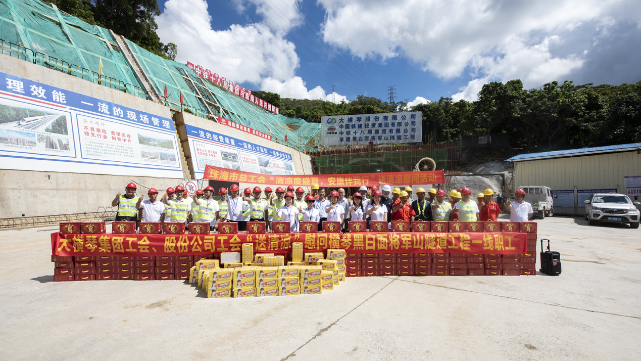 7月23日上午,橫琴新區(qū)總工會副主席、大橫琴集團(tuán)黨委書記、工會主席田偉帶隊赴橫琴先進(jìn)智能計算平臺項目及橫琴黑白面將軍山隧道工程項目開展夏日送清涼慰問活動。